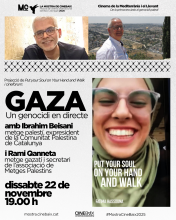 Després de la projecció, obrirem un cinefòrum amb Ibrahim Beisan i Rami Qanneta per conéixer com han viscut des de l'exili l'operació militar genocida d'Israel i reflexionar quines són les perspectives de futur per al poble palestí.